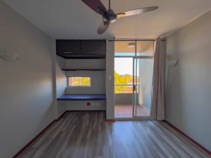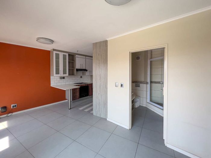 Studio apartment, 1 bathroom, 30sqm, north-facing balcony, security complex with covered parking near University of Pretoria.