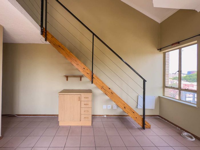 One-bedroom loft in Hatfield, 1 bathroom, 38 m², with covered parking and security. Close to amenities.