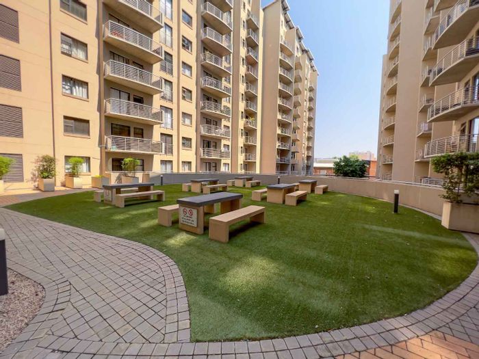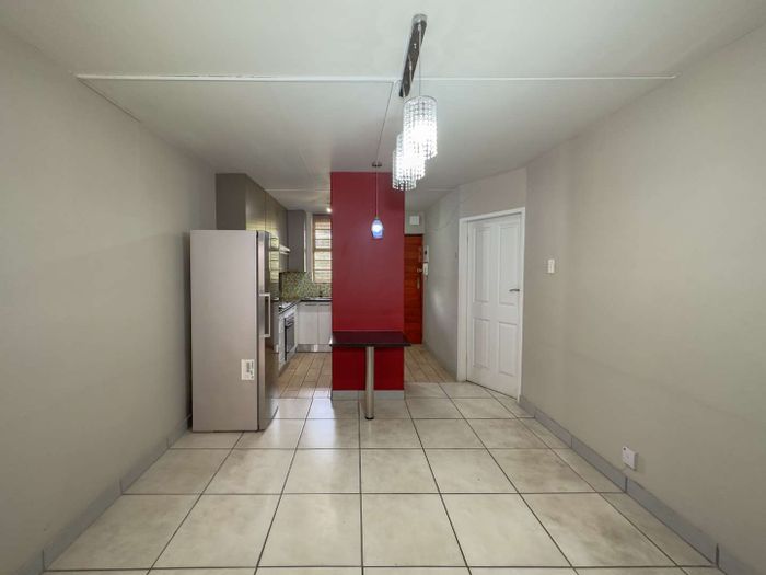 One-bedroom, one-bathroom apartment, 43 m², with covered parking in Hatfield. Close to University of Pretoria and amenities.
