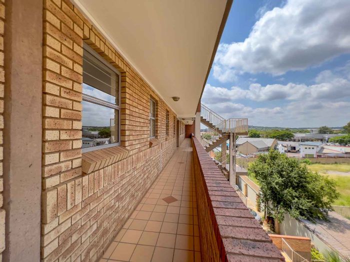 Two-bedroom, one-bathroom apartment in Hillcrest/Hatfield, 60 m² with covered parking. Close to shopping and university.