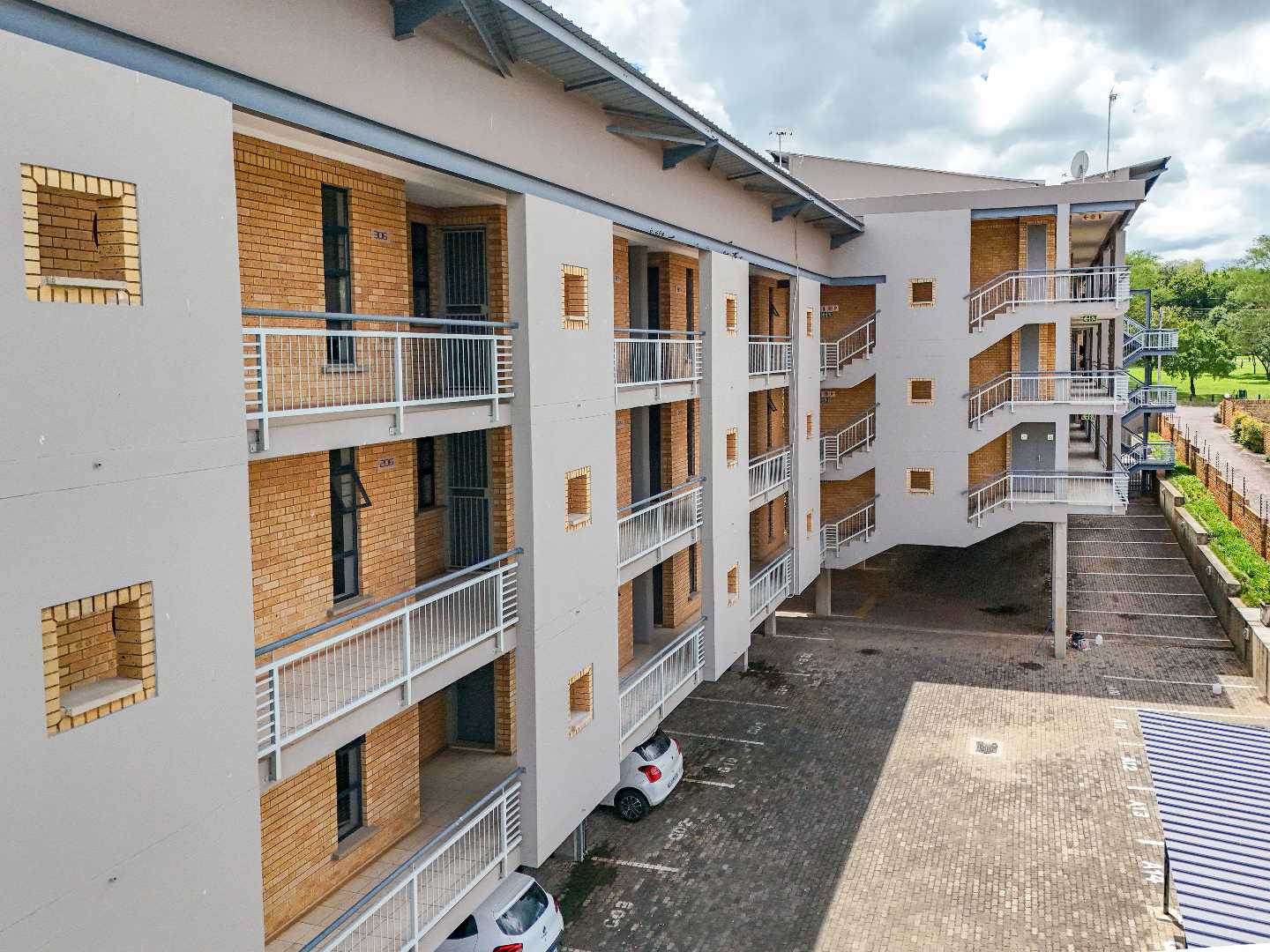 This security complex is unique, as it is situated in a gated residential estate. It boasts 24-hour security, internet access with a service provider, undercover parking, a braai area, and a resident caretaker.